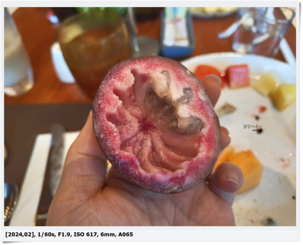 이 직원분이 저희에게 친절하게 조식 메뉴는 어떠냐 등등 챙겨 주시고 첫날은 과일을 둘째날은 디저트를 챙겨 주셨는데,, 첫날 가져다 주신 과일 중에 스타애플과 란죠네스(?)가 있었는데 필리핀 전통 과일이라고 하네요. 어떻게 먹는 지 몰라서 시도하지 못했는데 직접 가져다 주시고 어떻게 먹는지 직접 보여주시기 까지 하셨네요. 스타애플은 홍시맛이고 란죠네스는 포도맛이랍니다. 설명이 너무 부족하죠? 첨 먹어 본 맛이라 ㅎㅎㅎㅎ