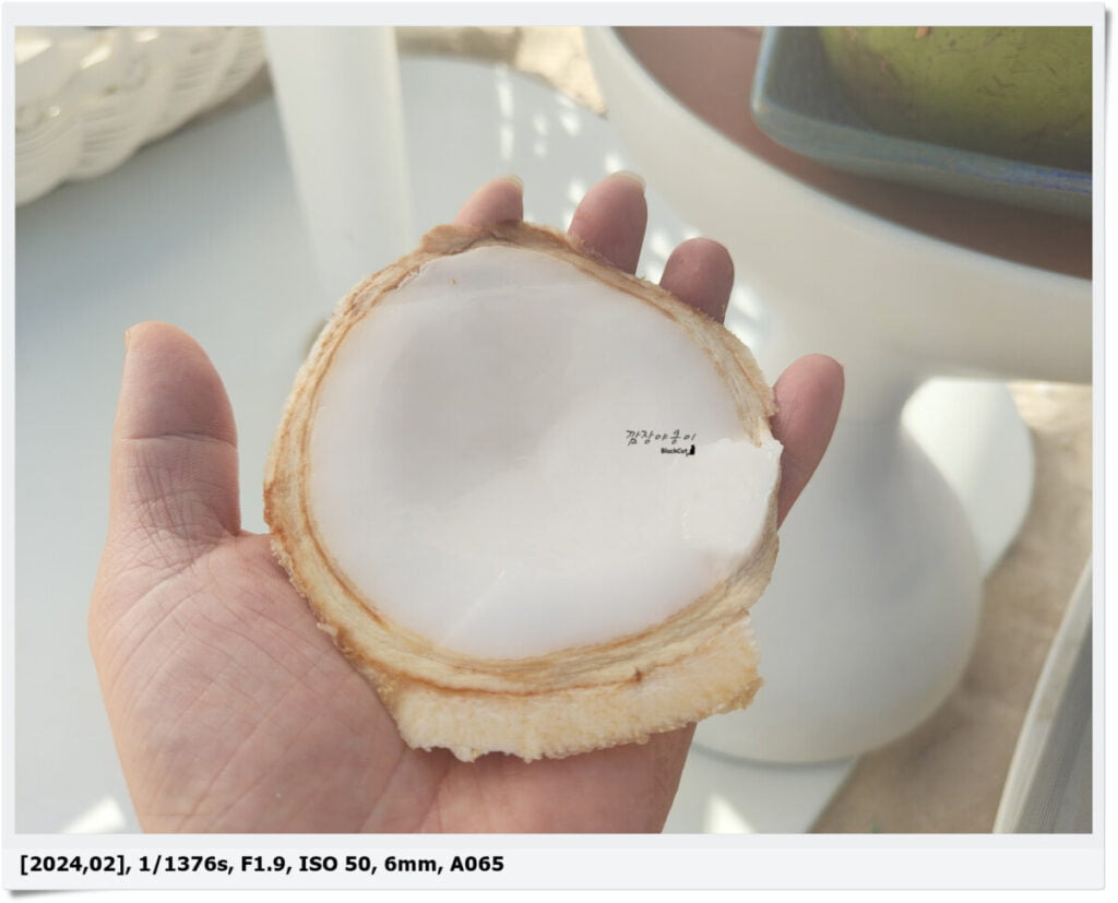 하얀 과육은 달콤함이나 씹는 맛은 없지만 살살 녹을 만큼 부드러움이 있어 개인적으론 마음에 들었네요. 코코넛 물만 좀 시원했으면 참 좋았겠는데. 아쉽아쉽