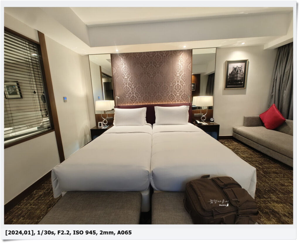 소피텔 객실의 내부 모습입니다. 화장실은 안에서 발(커튼)을 내려야 안이 안보이는 구조니 신경쓰이는 분들은 화장실 이용전에 발을 내리시는 걸 추천드려요.