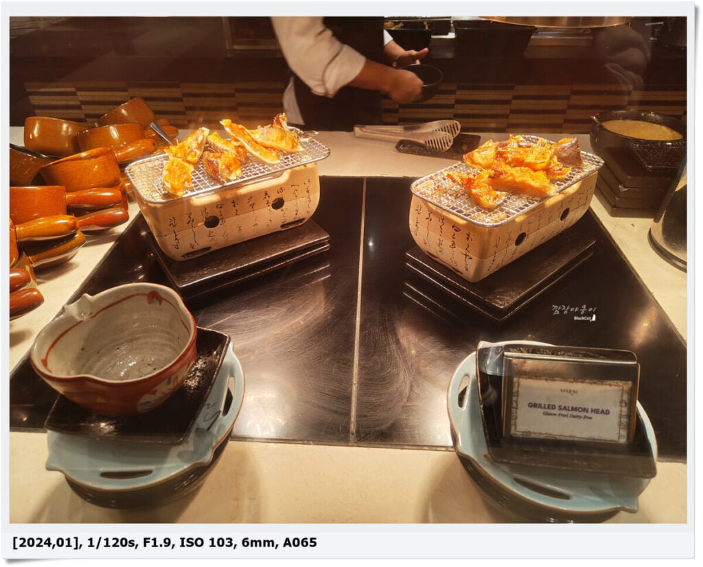 예전에 왔을 때는 직접 음식을 떠 갈 수 있었다고 하는데 지금은 메뉴마다 직원이 비치되어 있어서 원하는 걸 얘기하면 떠 주는 구조네요. 편한 점도 있으나 내 맘대로 뜰 수 없는 불편함도 있네요. 대신 음식을 깨끗하게 보존할 수 있는 장점은 있네요.