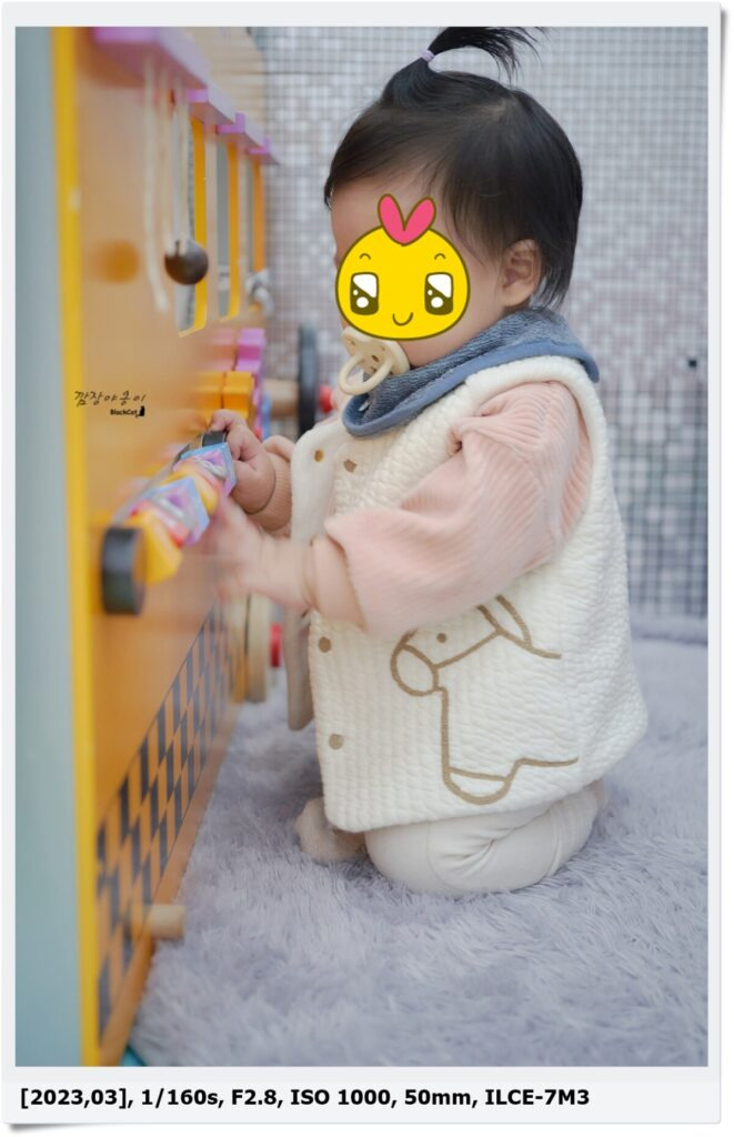 옆에 햇살이보다 일주일 빠른 아기가 있었는데 둘이 쿵짝이 맞는지 잘 놀아서 보기 좋았네요 ㅎ 그 아기는 2층 계단도 곧잘 혼자 올랐다 내려왔다 하던데 저희 햇살이는 혹시나 하고 경사로에 대려다 줘도 멀뚱멀뚱.. 지금 대려간다면 아마 헤집고 다니지 않을까 싶네요. 요즘은 집 쇼파도 혼자 오르락 내리락 걸리고 계단만 보이면 열심히 올라가던데 ;;