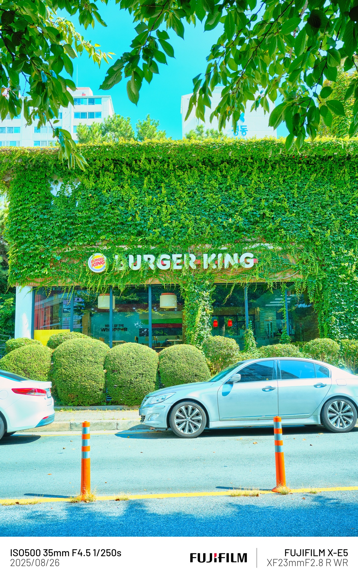 담쟁이 넝쿨에 둘러 쌓여 있는 버거킹까지 스냅을 촬영해 봤는데요.확실히 소니를 쓰면서 디지털에 익숙해져있고 항상 보정을 하던 습관이 남아서인지 필름시뮬레이션의 아쉬운 부분은 보정으로 다듬게 되네요.