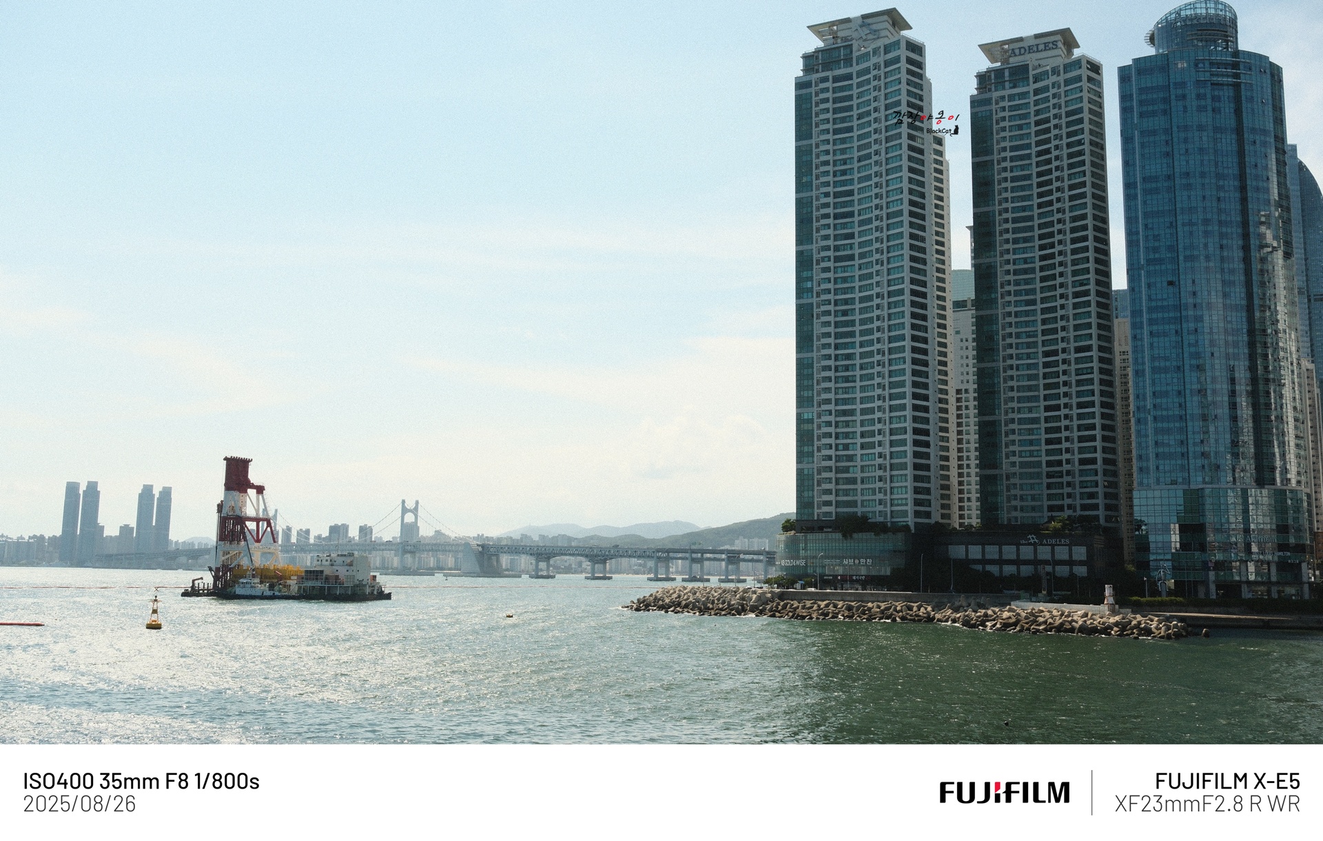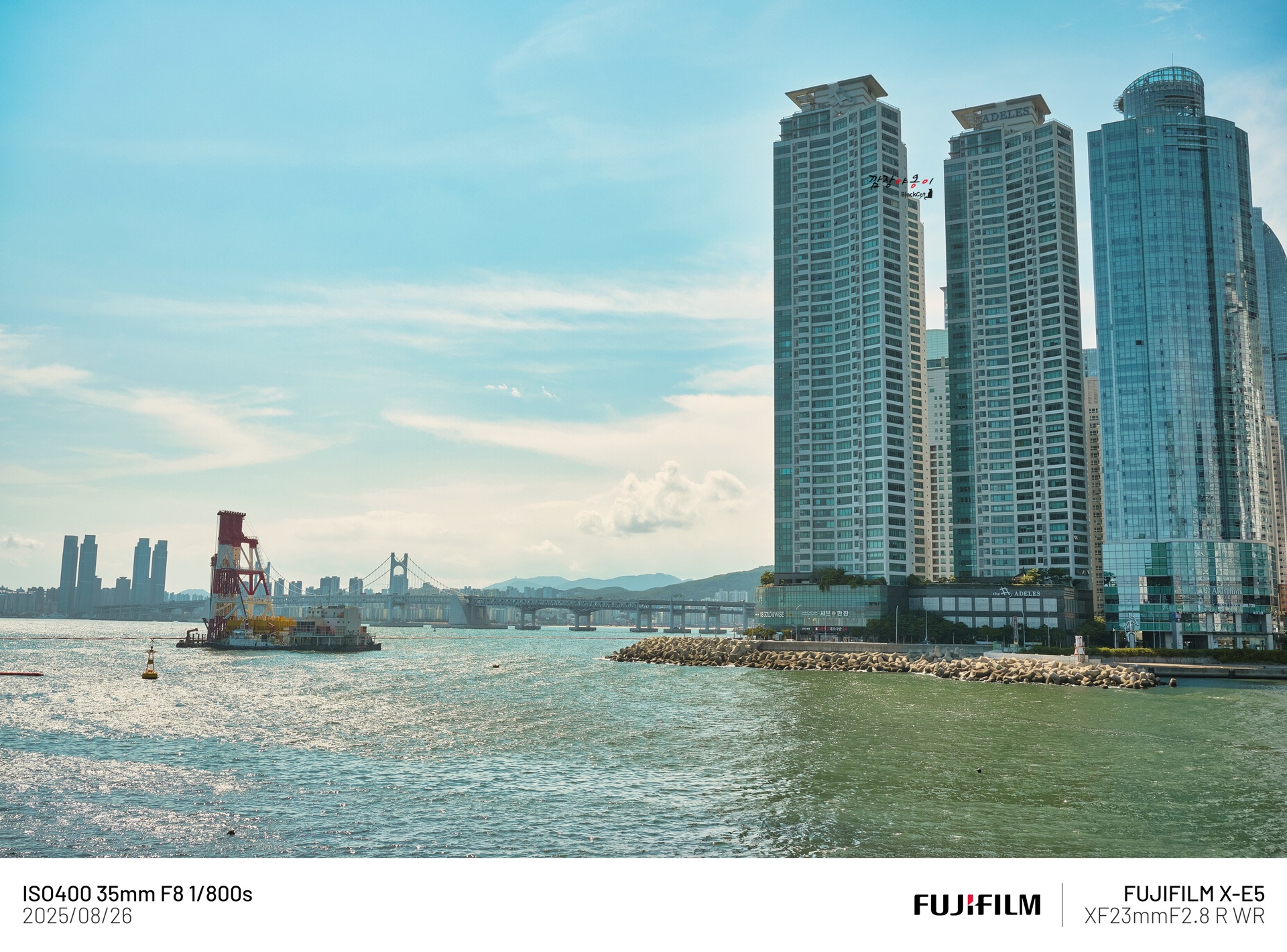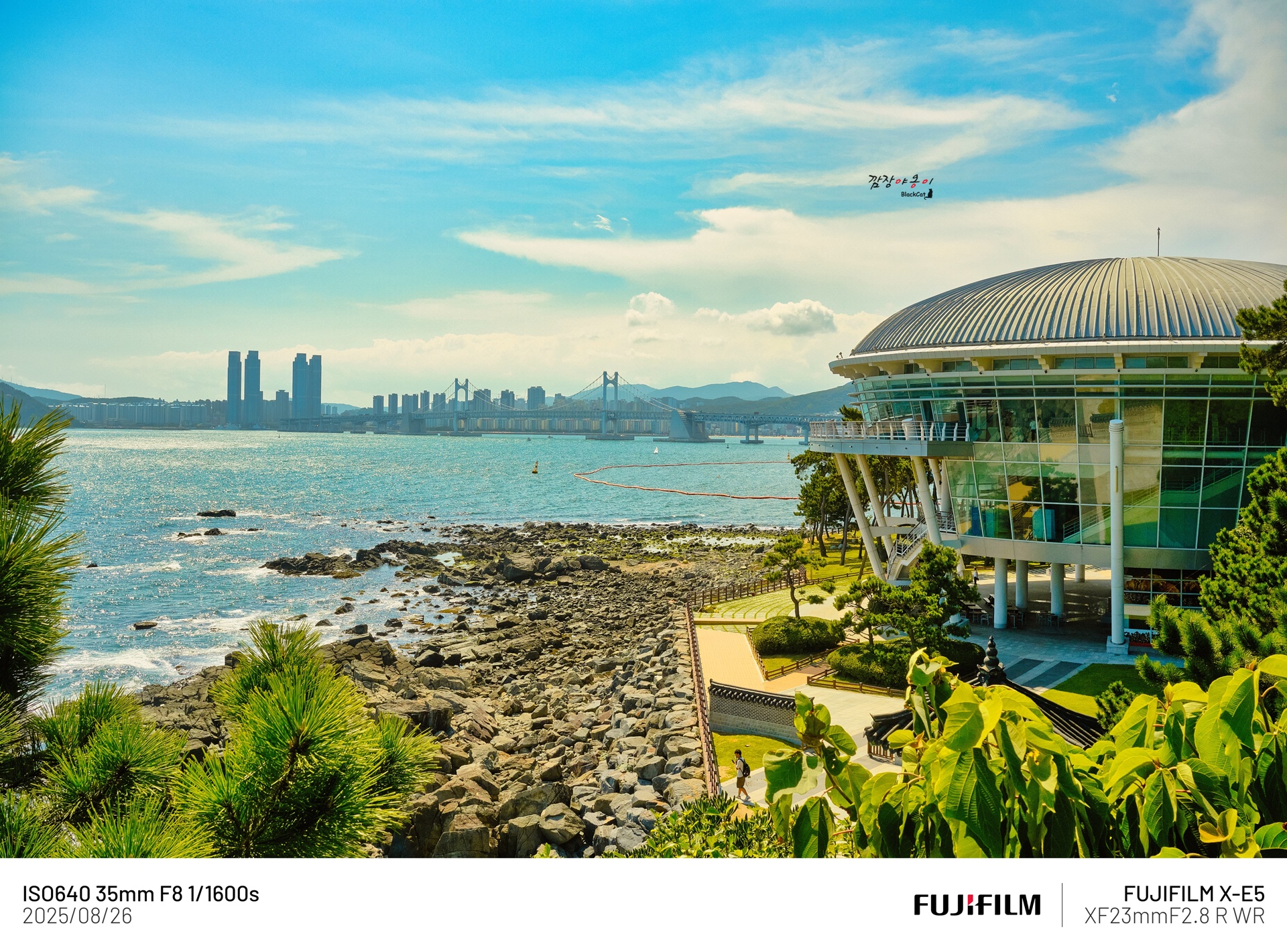 수동랜즈인 보이그랜더 18mm F2.8를 마운트하고 간다는게 깜빡하고 킷으로 구매한 XF23mm F2.8WR 자동랜즈를 마운트하고 나오는 바람에 후지필름 X-E5/ 후지필름 XF23mm F2.8WR 조합으로 해운대 해변, 동백섬 일대 스냅을 촬영해 봤습니다.