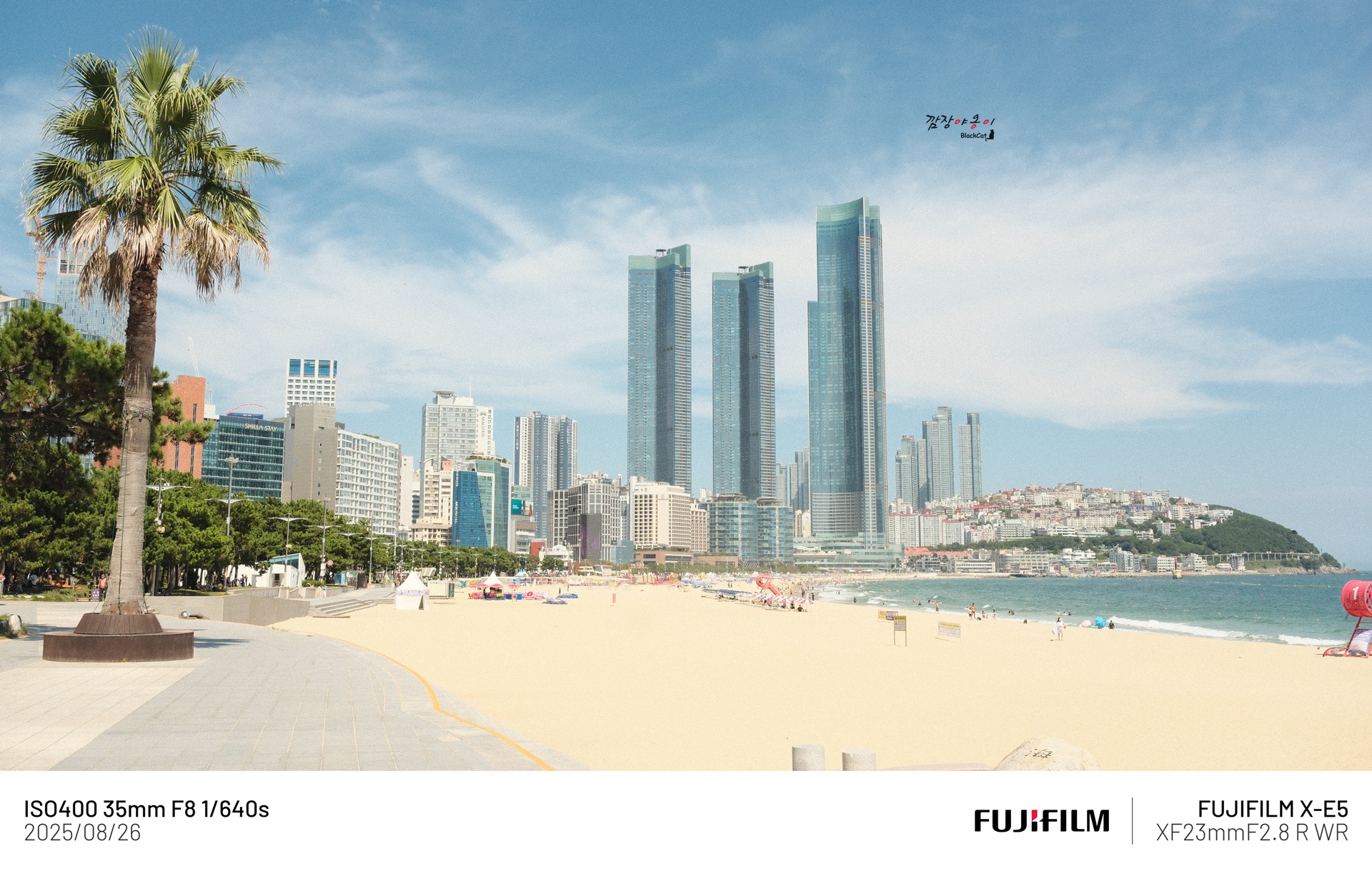 수동랜즈인 보이그랜더 18mm F2.8를 마운트하고 간다는게 깜빡하고 킷으로 구매한 XF23mm F2.8WR 자동랜즈를 마운트하고 나오는 바람에 후지필름 X-E5/ 후지필름 XF23mm F2.8WR 조합으로 해운대 해변, 동백섬 일대 스냅을 촬영해 봤습니다.