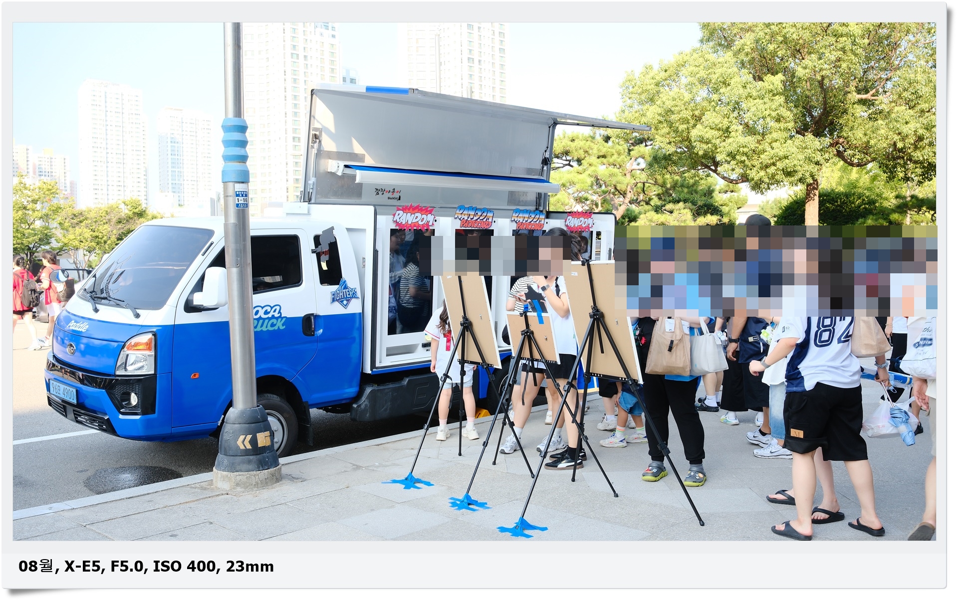 이번에 직관을 앞두고 지난주에 구매한 후지필름 X-E5를 가지고 갔는데요. 아래 사진들은 모두 색감은 보정하지 않았고 필름시뮬레이션과 제가 추가로 넣어둔 레시피로 촬영한 JPG 파일에 모자이크, 크기조절만 한 상태입니다. (참고로 후지 XE5 외 폰으로 촬영한 사진이 섞여 있으니 사진 아래 EXIF 정보를 확인하시길 바랍니다.)