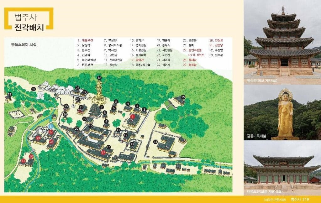 2023년도에 최우수 템플스테이 사찰로 선정된 1500년 역사의 법주사는 당일형/체험형/휴식형 프로그램을 하고 있으니 고즈늑한 사찰에서 마음의 평안을 찾고 휴식을 하고 싶으신 분들은 사전에 홈페이지에서 예약을 하시면 됩니다.