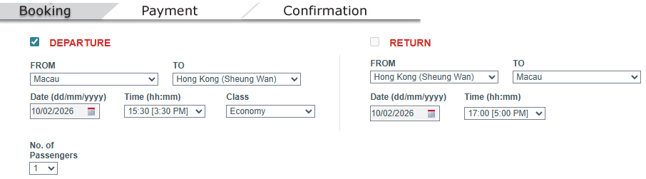 - 예약 후, 마카오 현지 페리 터미널에서 실물 페리 티켓으로 교환