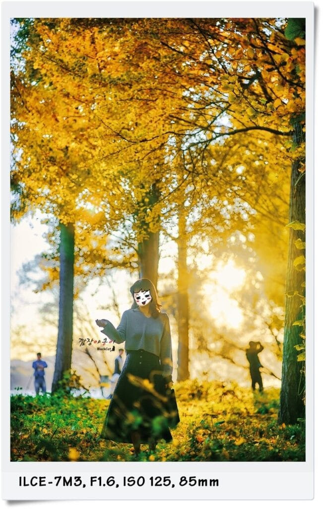 참고로 해가 넘어가는게 순간이라 금방 추워지니 두꺼운 외투는 필수로 챙겨 오셔야 할 거 같네요. 1Km에 달하는 은행나무 길을 끝까지 가보는 것도 좋지만 저희처럼 늦은 시간에 방문을 해서 시간에 쫒기는 분이라면 주차장 인근 부분만 둘러봐도 멋진 모습과 인생사진들을 찍을 수 있는 곳이랍니다.