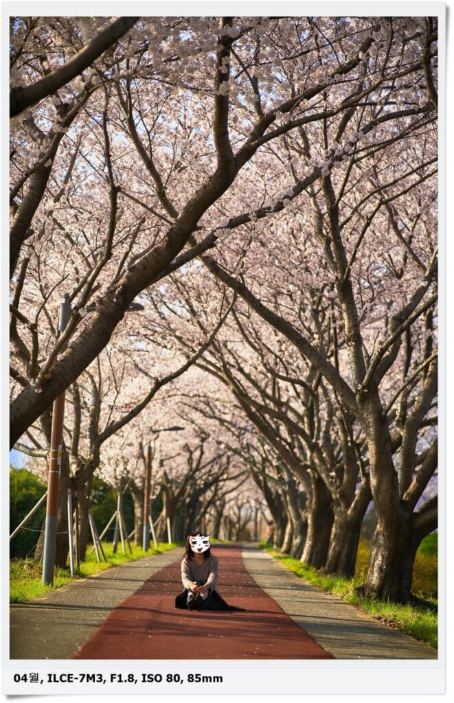 낙동강 벚꽃은 푸른 강과 분홍 벚꽃의 조합도 멋지지만 이렇게 벚꽃터널 아래서 찍는 사진도 분위기가 좋답니다.
