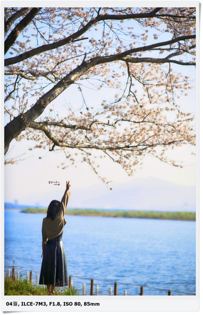 저 뒤쪽으로 보이는 곡선의 분홍빛이 모두 벚꽃길입니다. 이런 길이 약 12km에 걸쳐 있으니 산책겸 벚꽃터널 아래를 걸어보시는 것도 좋은 추억이 될 듯 싶은데요.