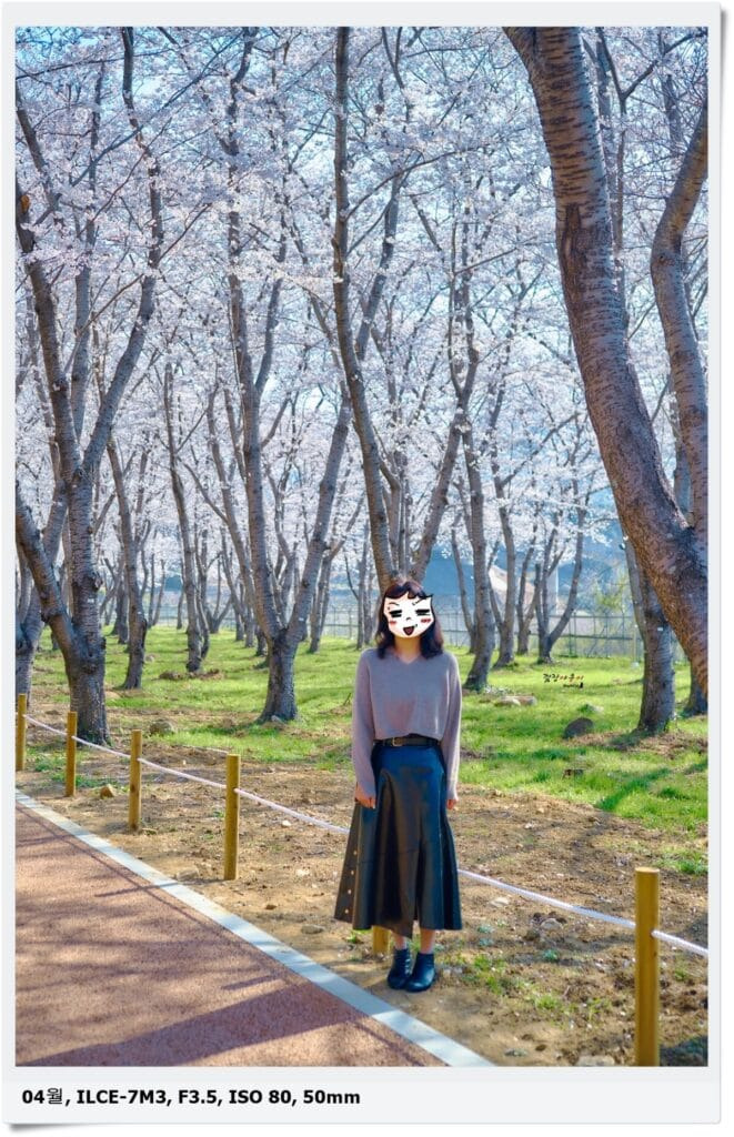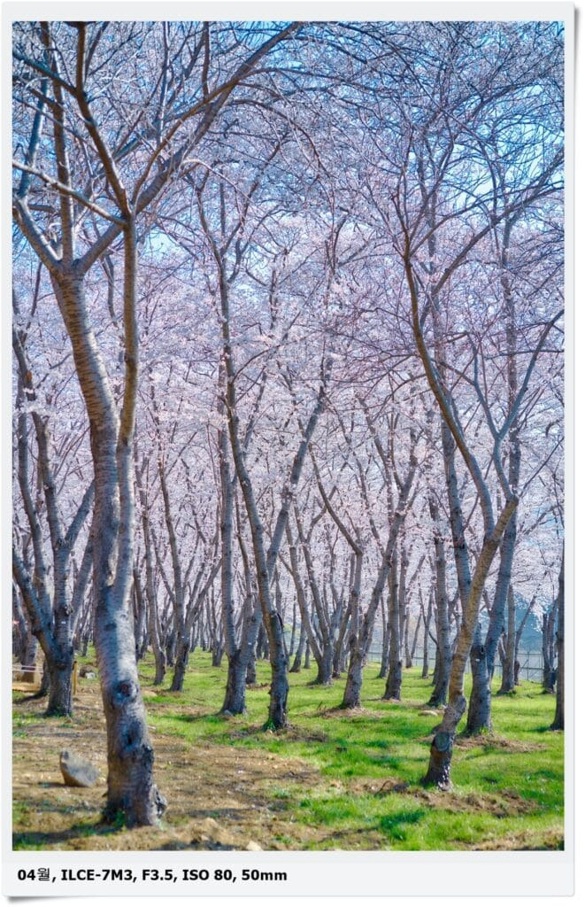 일주일만에 재방문인데 저 멀리 흰색의 높은 벚나무들이 보이네요. 일주일 기다리고 재방문한 보람이 있는 듯 합니다.