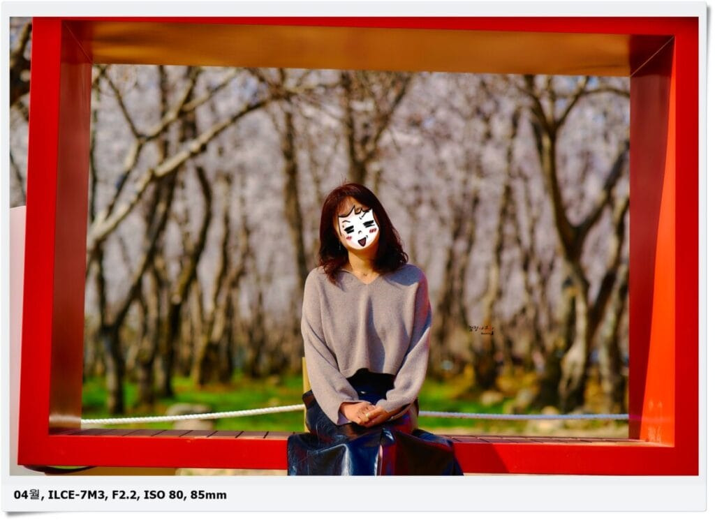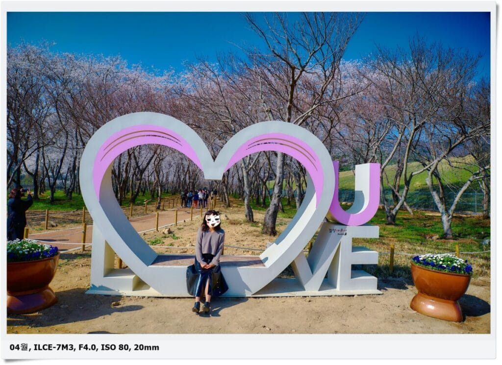 웅동수원지 앞을 막고있는 철문이 열리고 안으로 들어오면 가장 먼저 반겨 주는게 2개의 포토존과 나홀로 떨어져 서있는 한그루의 벚나무가 있습니다.
