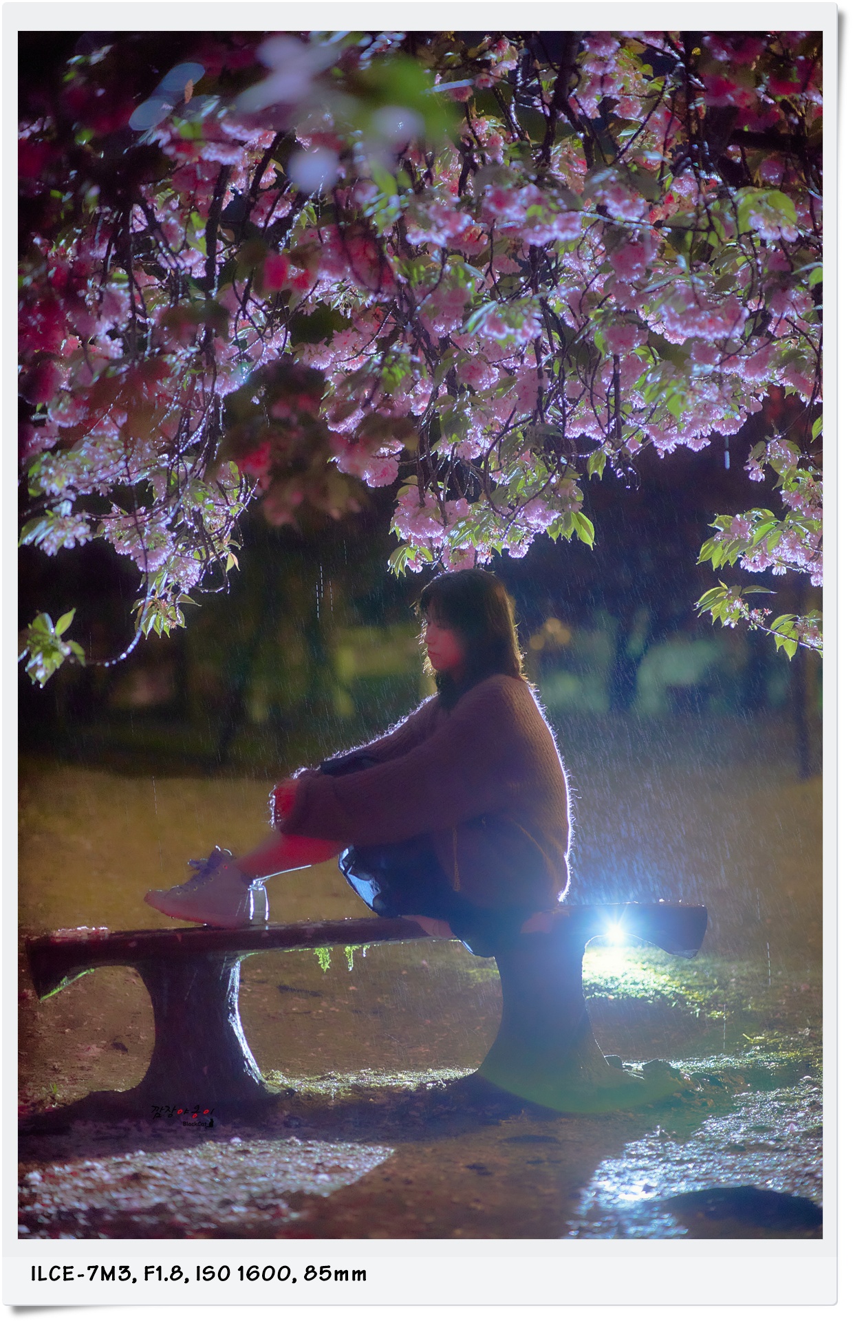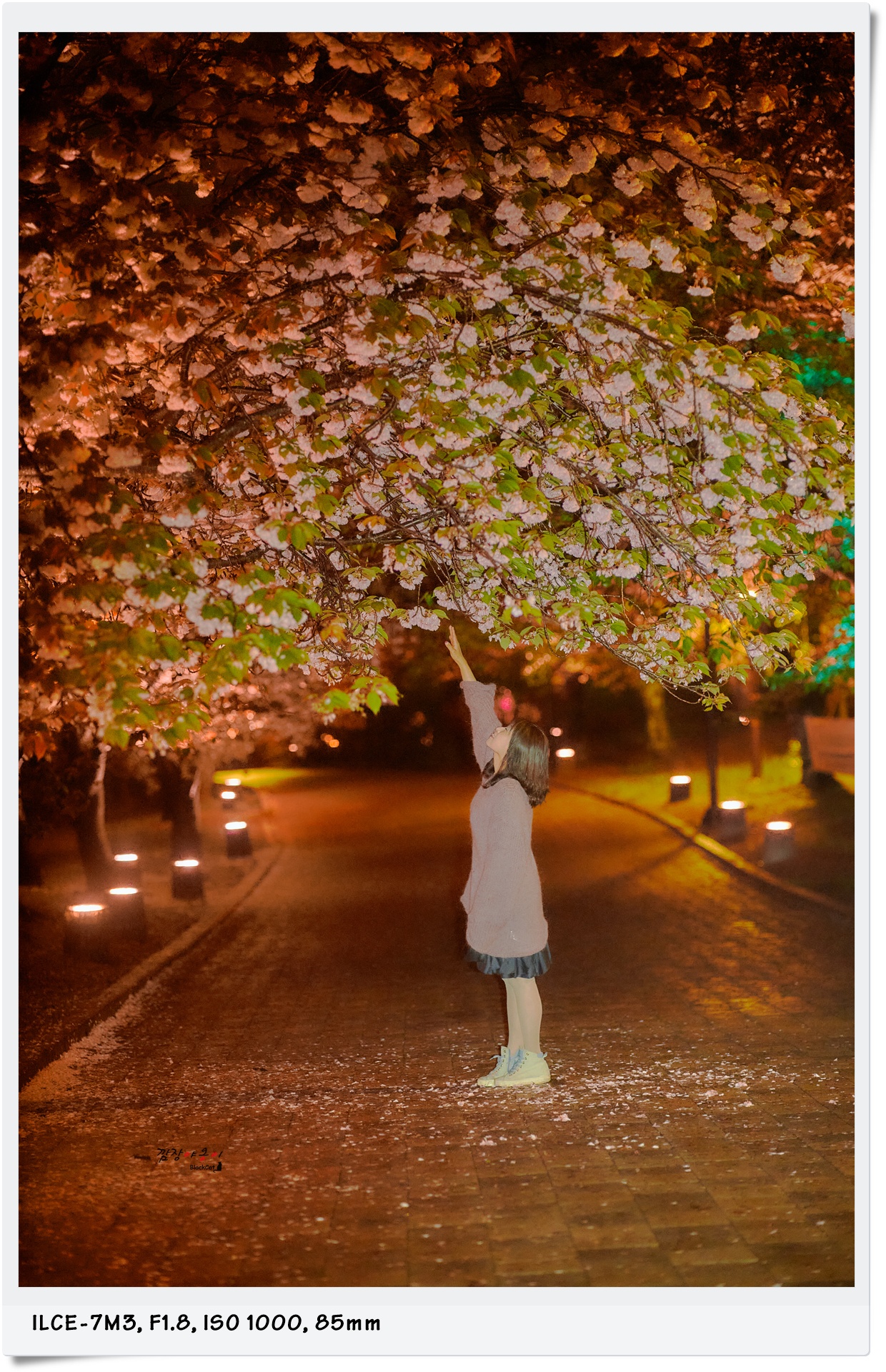 전날 밤에 와서 찍었던 그 자리인데, 밤새 비바람으로 인해 꽃잎이 많이 떨어졌네요. 전날 밤에 찍은 사진과 비교를 해봐도 확연히 꽃잎이 없는게 티가 납니다.