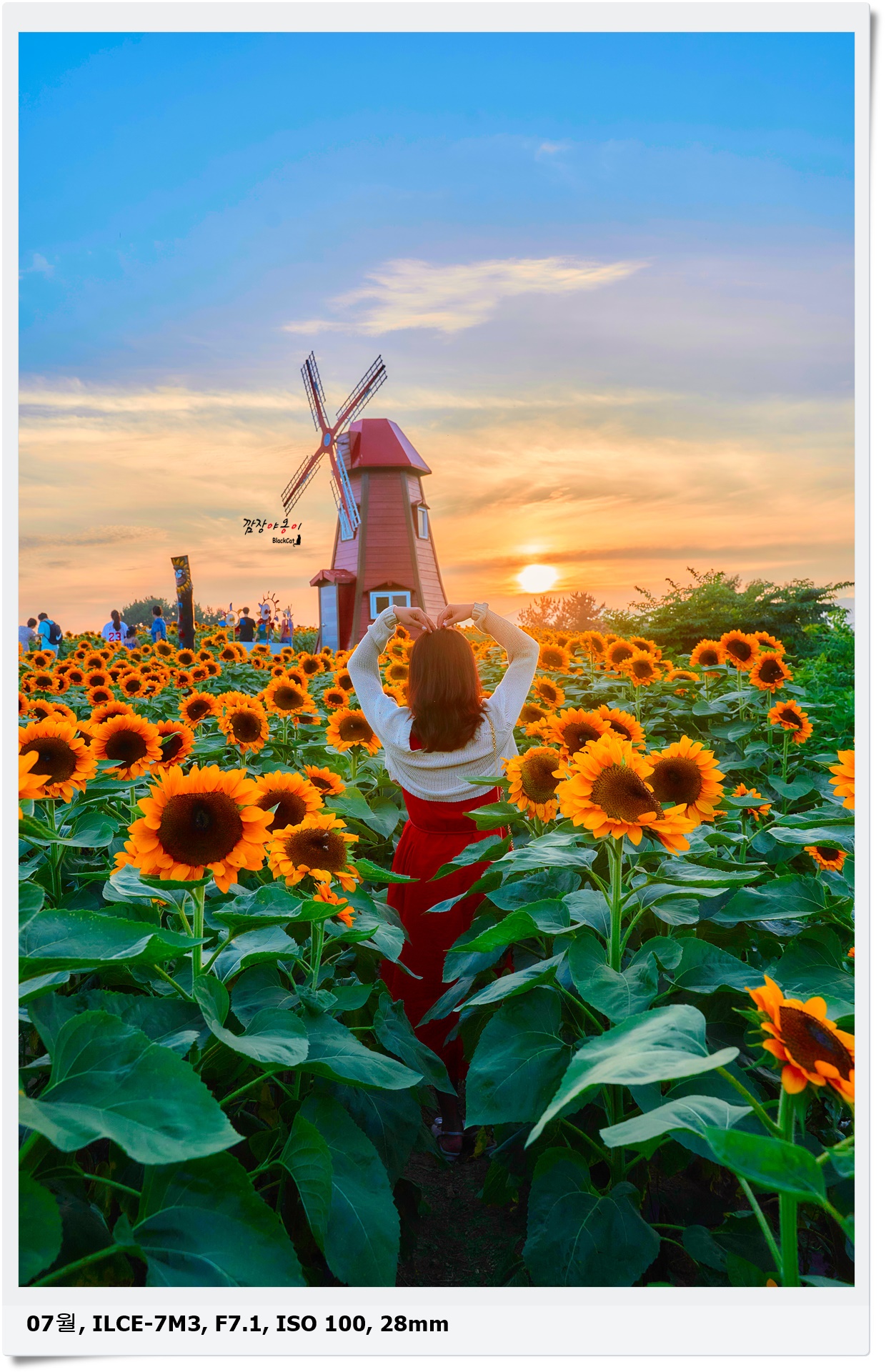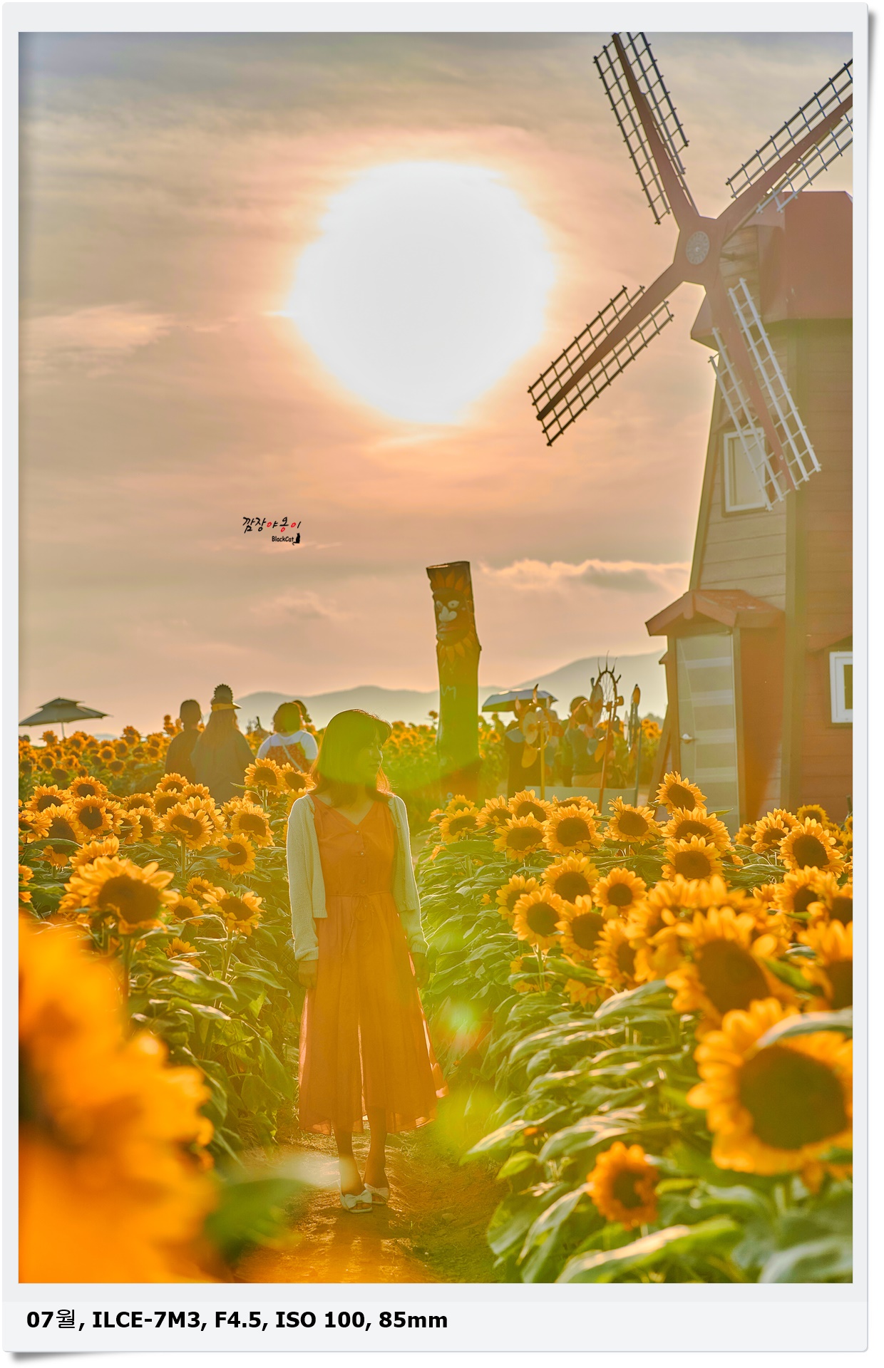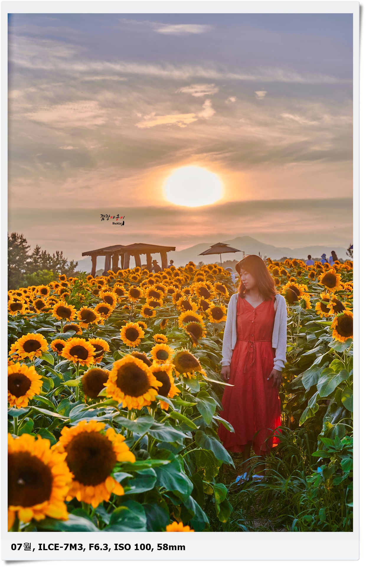작년엔 해바라기 보러 태화강 국가정원에 다녀왔었는데 확실히 이곳 강주가 더 아름다운거 같습니다. 꼭!!! 일몰에가세요. 옆에 진사분들 이야기하는거 들어보니 일출도 예쁘다고 하네요. 일몰시간엔 사람들이 많으니 붉게 물든 하늘을 조용히 찍고 싶다면 일출시간도 좋아 보입니다만, 여름이라 해가 너무 일찍 떠서 일찍 일어날 각오는 하셔야...