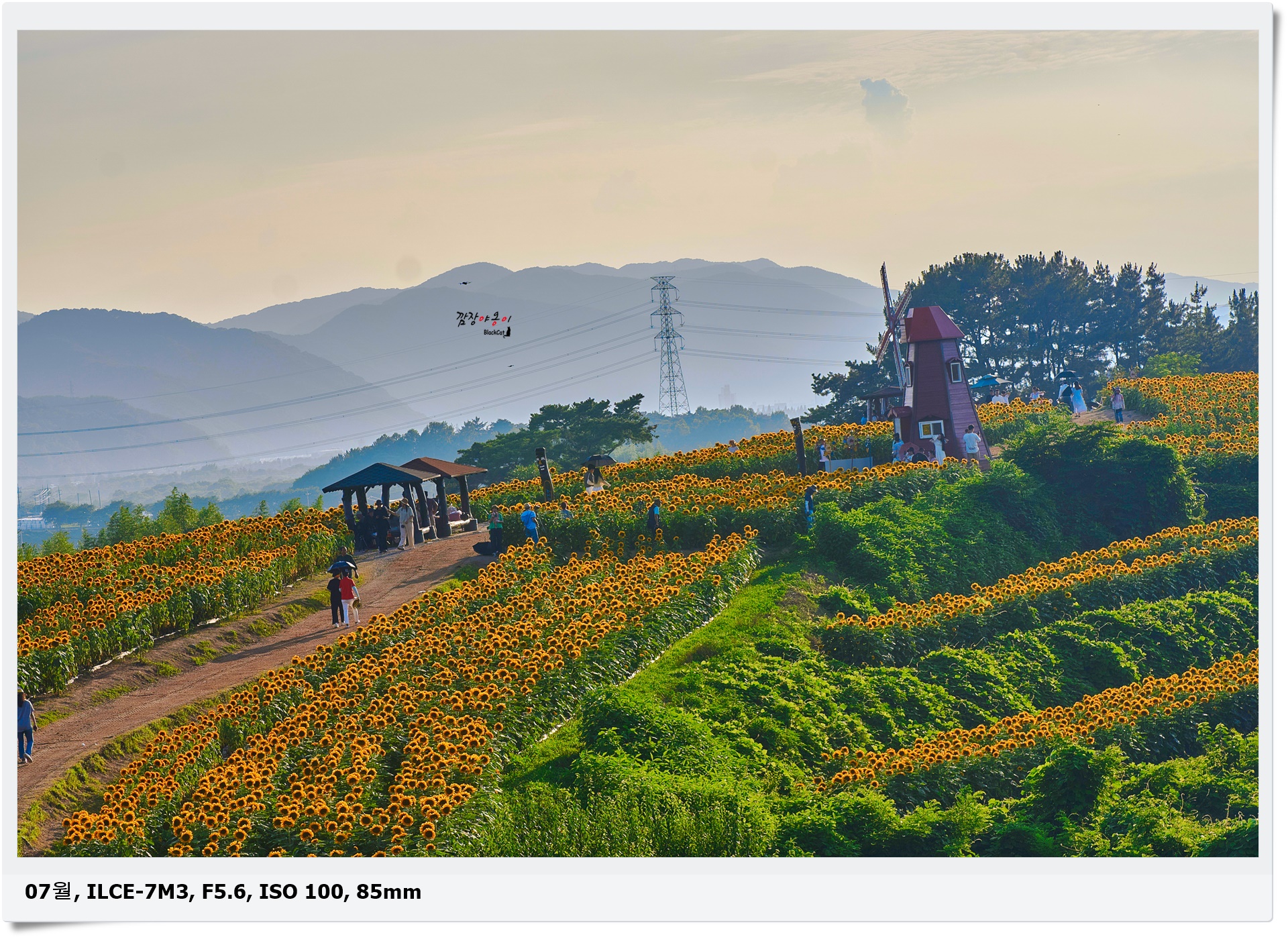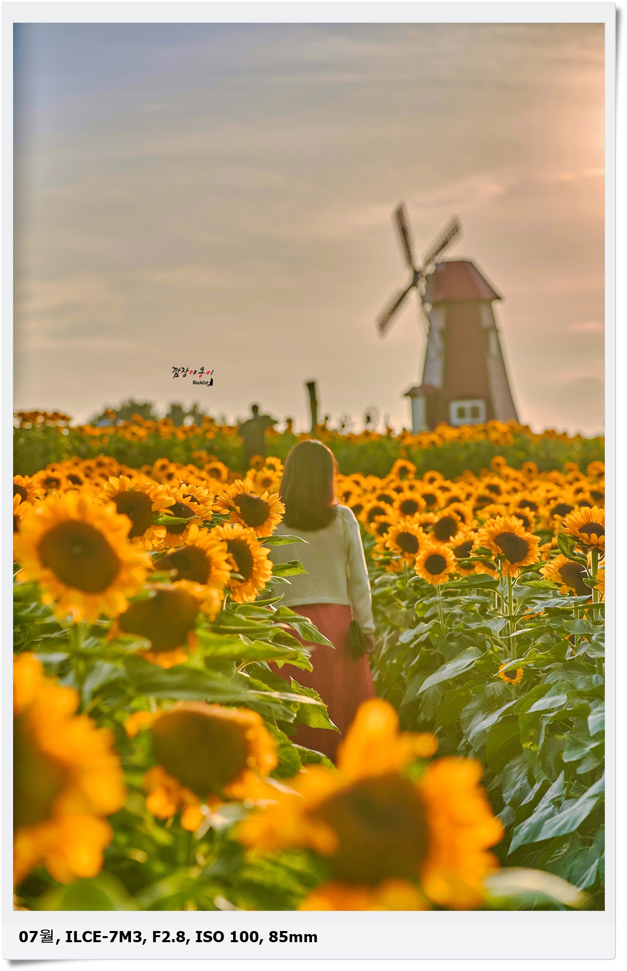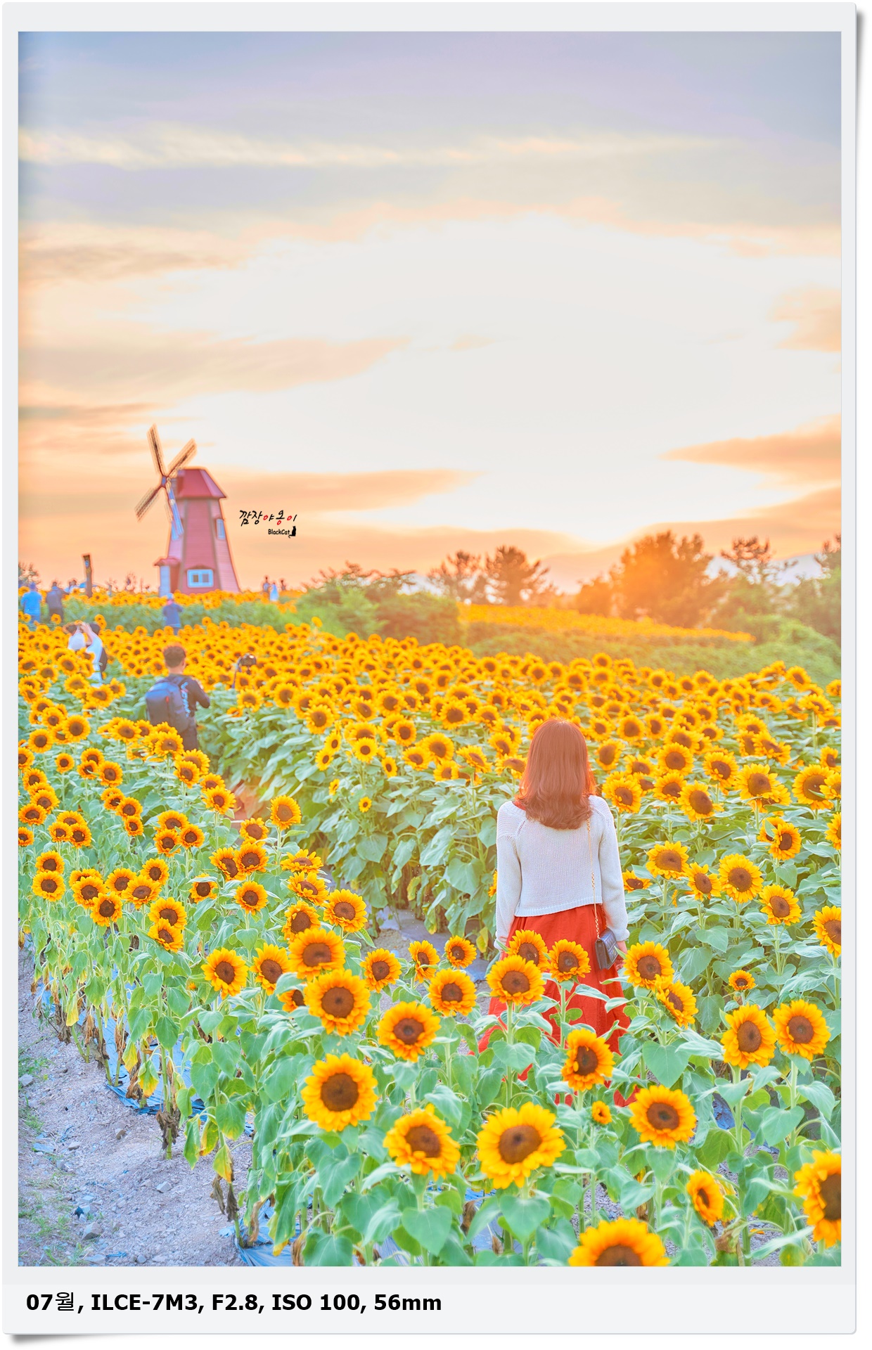 작년엔 해바라기 보러 태화강 국가정원에 다녀왔었는데 확실히 이곳 강주가 더 아름다운거 같습니다. 꼭!!! 일몰에가세요. 옆에 진사분들 이야기하는거 들어보니 일출도 예쁘다고 하네요. 일몰시간엔 사람들이 많으니 붉게 물든 하늘을 조용히 찍고 싶다면 일출시간도 좋아 보입니다만, 여름이라 해가 너무 일찍 떠서 일찍 일어날 각오는 하셔야...