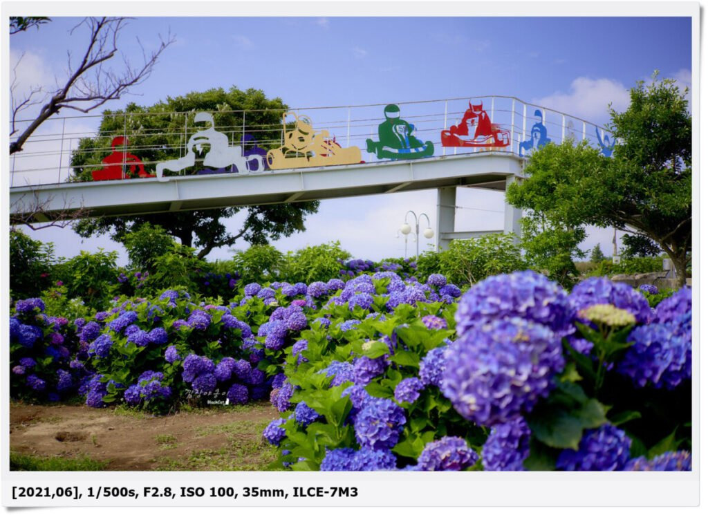 윈드1947은 카트 테마파크로 자동차 경주인 카트 체험장과 서바이벌 등을 할 수 있는 작은 놀이시설인데요. 이곳에는 카트 외에도 유명한 것이 있으니 바로 보라수국입니다.