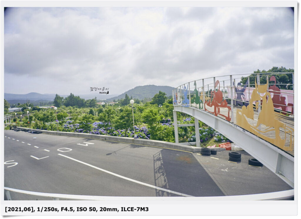 정확한 수국의 위치는 서바이벌 체험관 앞에 보시면 사진에 있는 큰 글씨로 "I♥CITRUS"가 보일텐데요. 글씨 바로 오른쪽에 보시면 3번째 사진에 있는 철제 육교가 있습니다.