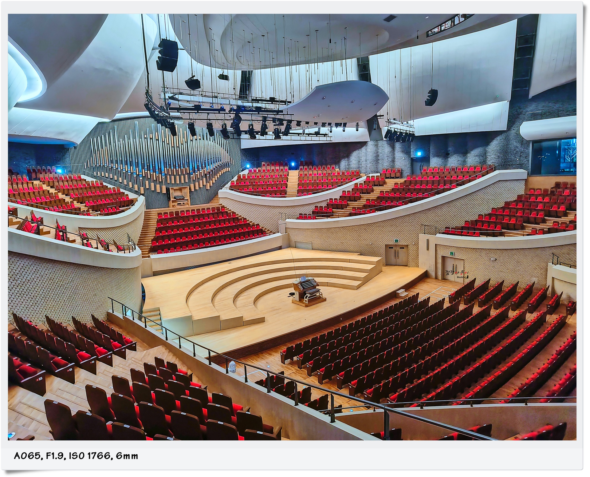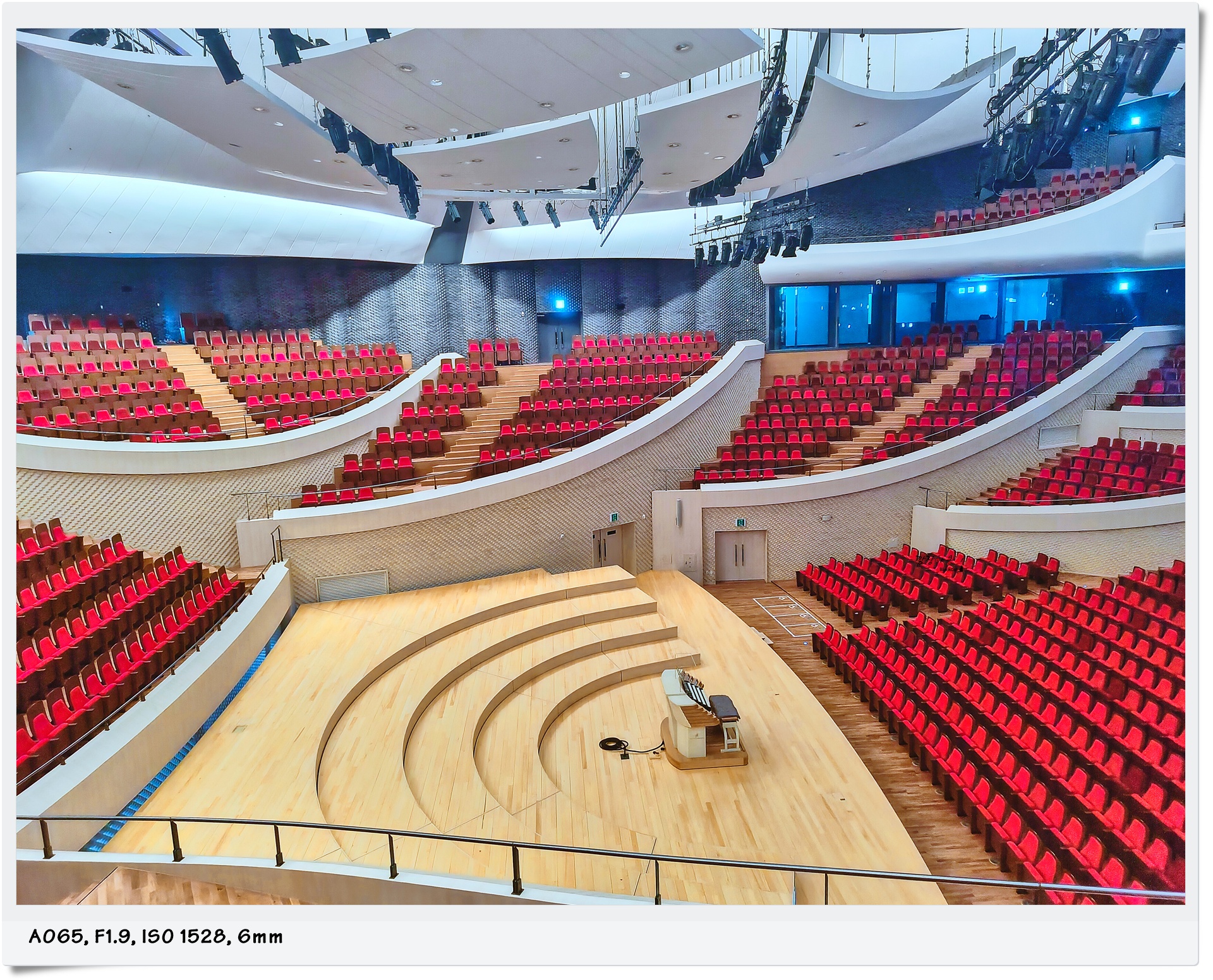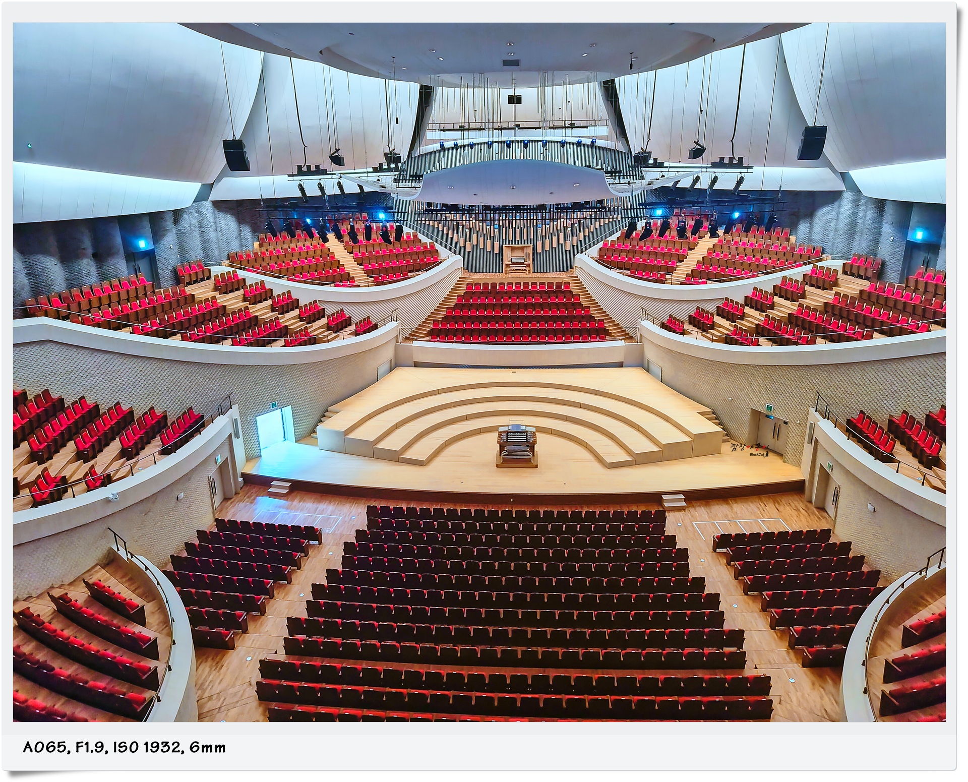 중앙에 무대가 있고 주위를 360도로 애워 감싸듯 관람석이 배치되어 있습니다. 이 구조는 서울의 롯데콘서트홀과 매우 흡사한 구조로 되어 있으며 빈야드라고 해서 포토밭을 일컫는 구조입니다.
