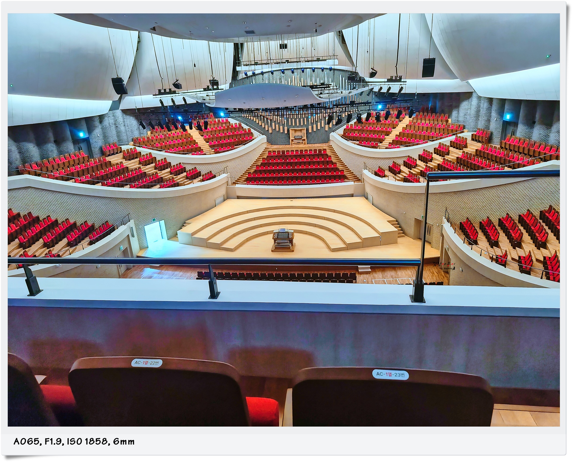 참고로, 의자가 한개에 수십만원이라고 합니다. 음악당인 만큼 소리에 민감해 소리의 울림이나 퍼짐등을 고려해 가격이 비싸도 좋은 소재의 나무를 이용해 각도까지 계산해 만들었다고 합니다. 그리고 에어컨도 바람으로 인해 소리의 퍼짐에 영향을 줄 수 있다하여 바닥을 통해 냉/난방이 이루어 진다고 하니 클래식에 진심인 분들은 꼭 방문하셔서 직접 그 멋진 선율을 들어 보시는 것을 추천합니다.