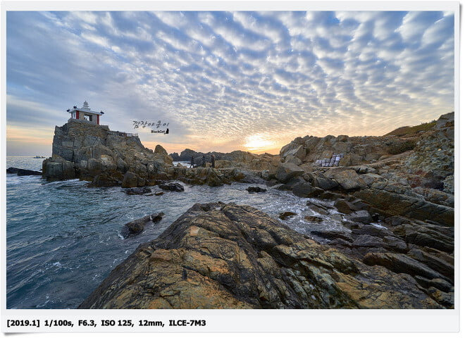 구름이 매우 예쁜날이었는데요. 태양이 뜨는 것을 중심으로 오른쪽에는 뭉개구름이 예쁘게 있고 왼쪽은 일반 구름이 껴 있었는데 다행히도 해가 뜨는 장면은 가리는거 없이 잘 봤네요. 일출/ 일몰은 큰 행운이 따라야 된다고 하는데 오랑대 첫 출사에 예쁜 모습을 담아 왔습니다.