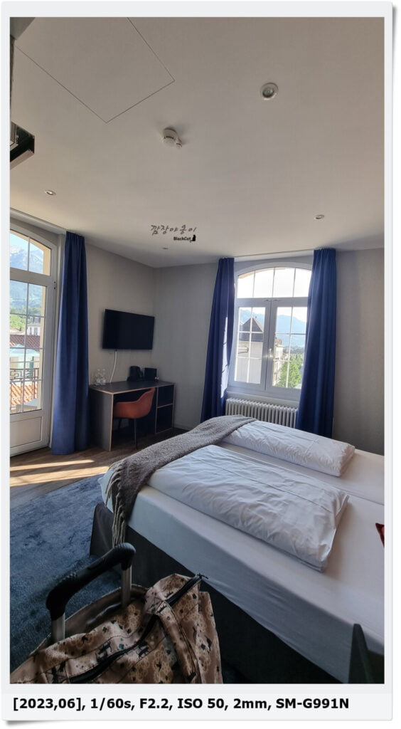 2개의 창문과 1개의 선반, 침대, 겨울철 유용할 라디에이터가 실내가 존재하고 있는 방이었는데요. 우리는 6월이라 라디에이터를 사용할 필요가 없었지만 겨울철에 방문하는 많은 분들이 기본적으로 스위스 숙소가 춥다고들 하시더군요. 라디에이터를 틀어도 많이 춥다고 하던데… 저희는 겨울에 절대 못올듯 ㄷㄷ