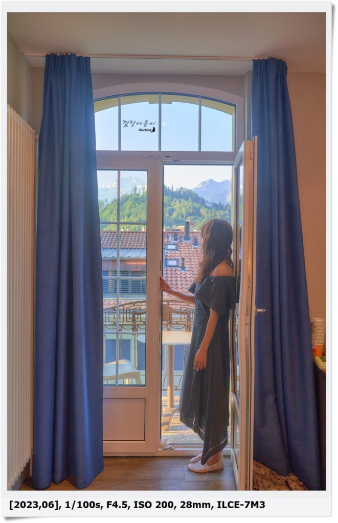직원이 '433호'가 제일 마음에 드는 방이라고 말한 이유.. 위 사진들을 보시면 아시겠지만 2개의 창을 통해 인터라켄의 확 뚫린 거리를 볼 수 있고 작은 테라스가 있어 휴식을 취할 수도 있으며 정면으론 마운틴뷰도 볼 수 있는 그런 방이었네요.