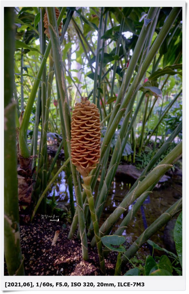 맨 위에 있는 나비 같이 생긴건 나비가 아니라 진기베르 스펙타빌레의 꽃인데요. 파인애플 같이 생긴 저 틈 사이사이에서 꽃이 핀다고 합니다.