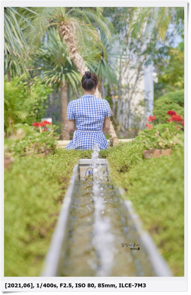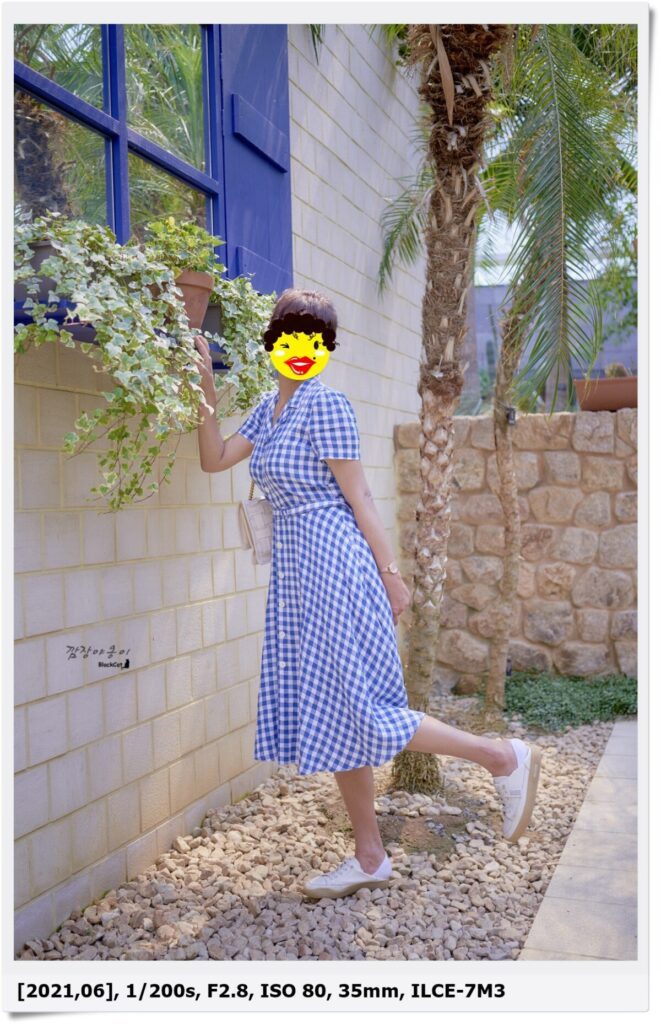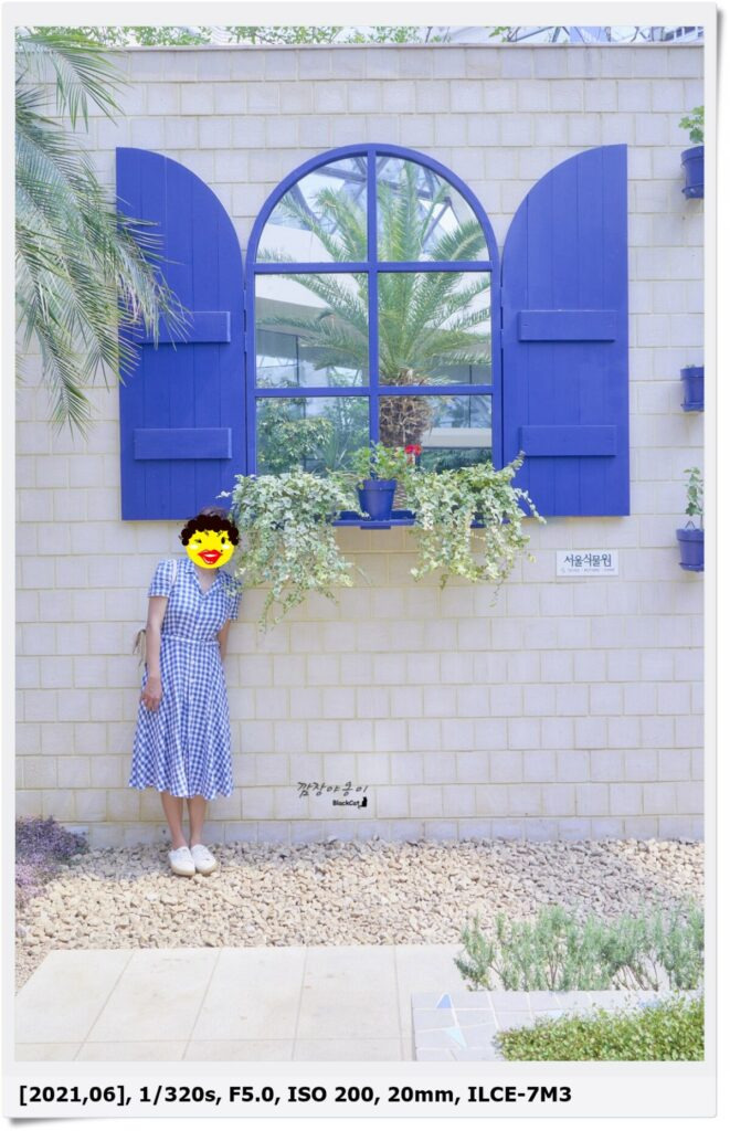 와이프가 입고간 파란 원피스와 지중해를 나타내는 파란 소품들과 참 잘 어울리는거 같네요. 식물들만 있는 것보다 이렇게 군데군데 포토존으로 다른 분위기를 꾸며 놓아서 구경하는 재미가 쏠쏠하네요.
