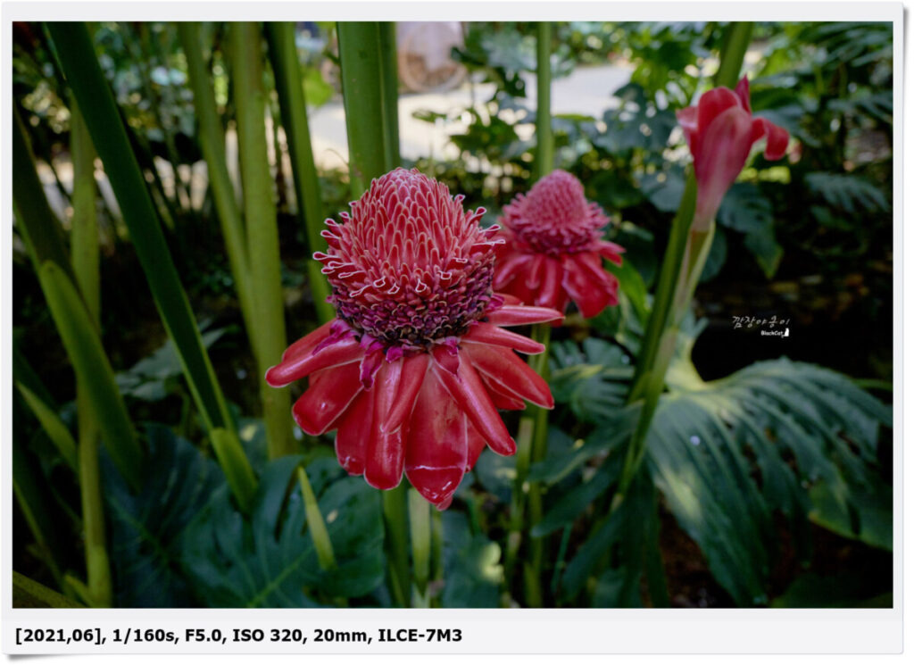 정열의 불꽃이자 온실을 밝혀주는 횟불인 에틀린케라 엘라티오르라는 이름을 가진 꽃인데요. 빨강의 강렬함이 인상적으로 눈을 테기 힘들만큼 인상적인 꽃이네요.