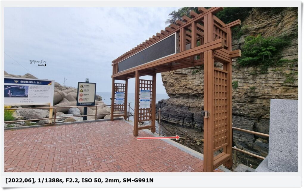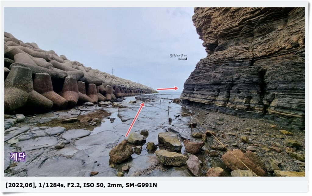 계단에서 내려와서 왼쪽 바다쪽으로 바라본 모습입니다. 사진의 우측으로 보시면 노란색 밧줄도 보이 실텐데요.