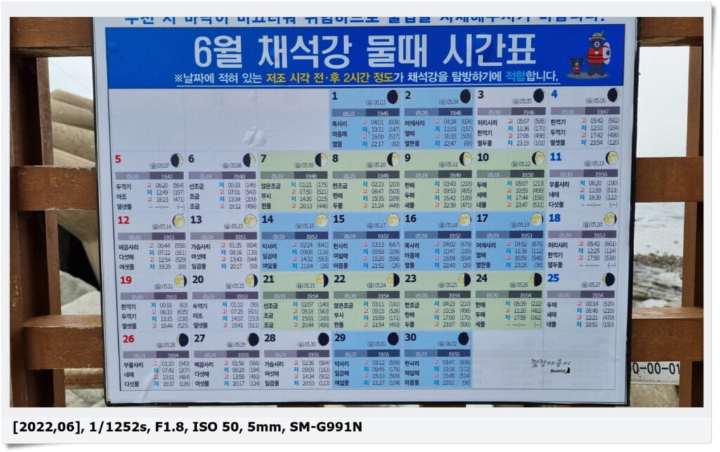 6월 물때는 위 사진을 참조하시면 됩니다.
