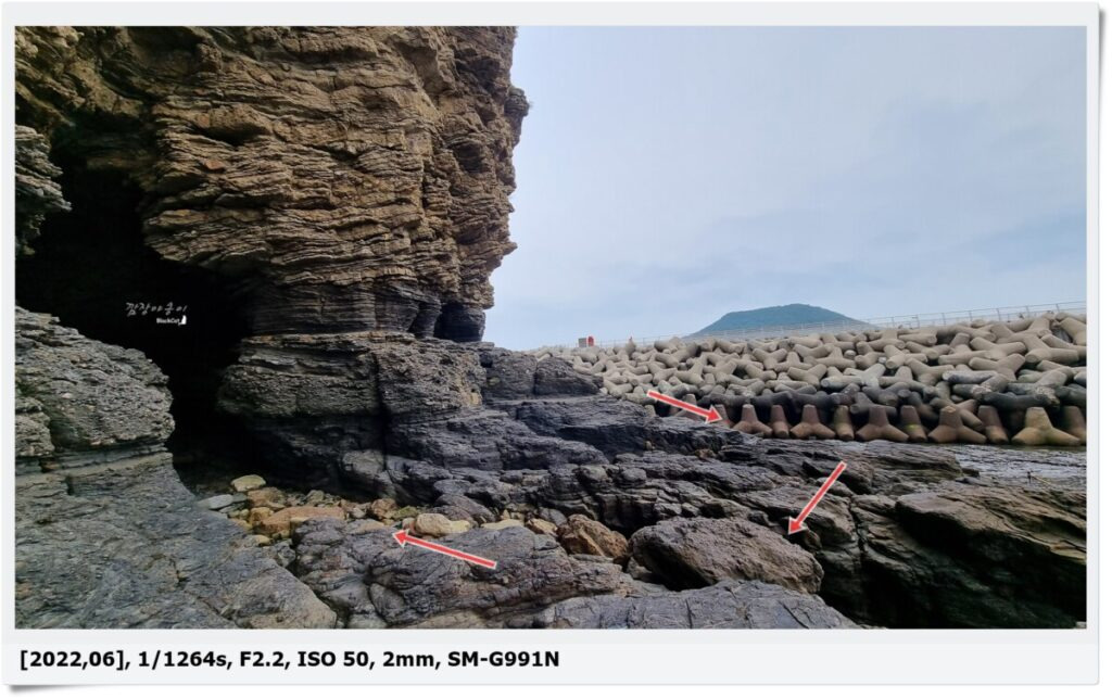 계단 아래로 내려가서 절벽을 따라 1분만 더 가시면 오늘의 목적지인 동굴이 나오는데 물때를 못맞추시면 계단 아래가 물에 잠겨 갈 수가 없겠죠??