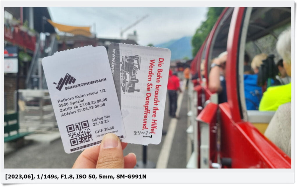 인터라켄 Ost 선착장에서 브리엔츠까지 유람선을 타고 가셔도 되고 기차를 이용하셔도 됩니다. 이후 브리엔츠역 맞은편에 있는 증기기관차 티켓을 구매한 뒤 증기기관차로 정상까지 이동합니다.