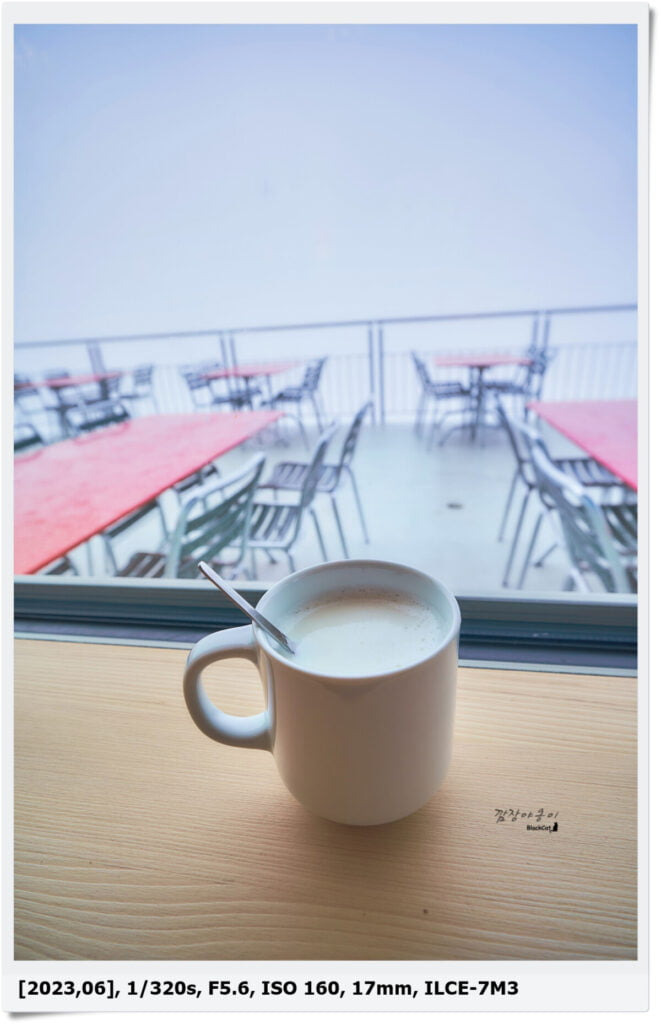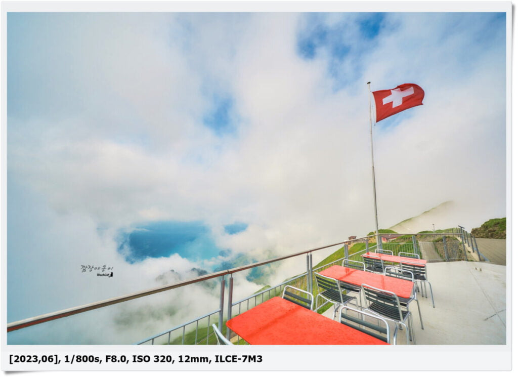 다행히 식당이 있어서 로트호른 식당에서 따뜻한 커피와 우유를 마시며 구름이 걷히기만 기다렸었는데요. 사진으론 하얀 구름만 보이지만 원래는 저 곳에서 내려다보니 브리엔츠 호수의 풍경이 아주 예쁘답니다.