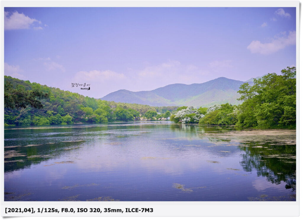 밀양팔경 중 한곳으로 못의 중앙에 있는 집이 있는 작은섬 주위로 하얀 꽃이 피는 이팝나무가 유명한 곳입니다. 꽃은 5~6월이 절정이지만 개화시기가 2주정도라 타이밍을 잘 맞춰가야 멋진 하얀 눈송이로 뒤덮힌 5월의 크리스마스를 볼 수 있답니다.