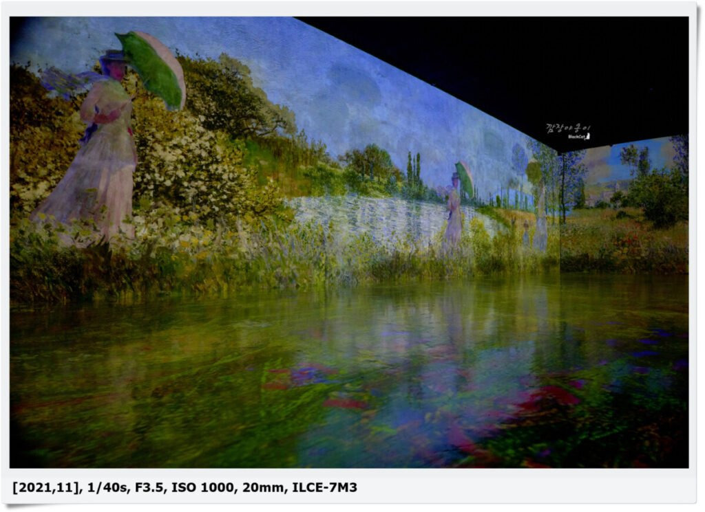 다만, 그림 그림마다 제목이 뭔지 컨셉이 뭔지 등 설명을 볼 수 없지만 사실 설명보다 그림 자체를 커다랗게 느낄 수 있다는 게 좋았답니다. 화가를 잘 몰라도 그림을 잘 몰라도 하나의 영상을 보는 것처럼 볼 수 있는데다 정말 자유롭게 서서 또는 앉아서 또는 걸어가면서 볼 수 있었네요. 특히 앉아서 멍하니 처음부터 끝까지 다 보는 것도 좋더라구요. 한 번 돌아가는 데 45분 정도여서 한 번은 이곳 저곳 돌아다니면서 감상하고 한 번은 자리 잡고 앉아서 쭉 보고~ 두 번 정도는 보고 싶은 전시랍니다. 1~2년 주기로 바껴서 사실 제주도 여행 가는 또하나의 목적으로 언제 전시가 바뀌나 늘 보고 있답니다. 모네가 끝나면 또 어떤 작가의 전시회를 할 지 기대하고 있네요.
