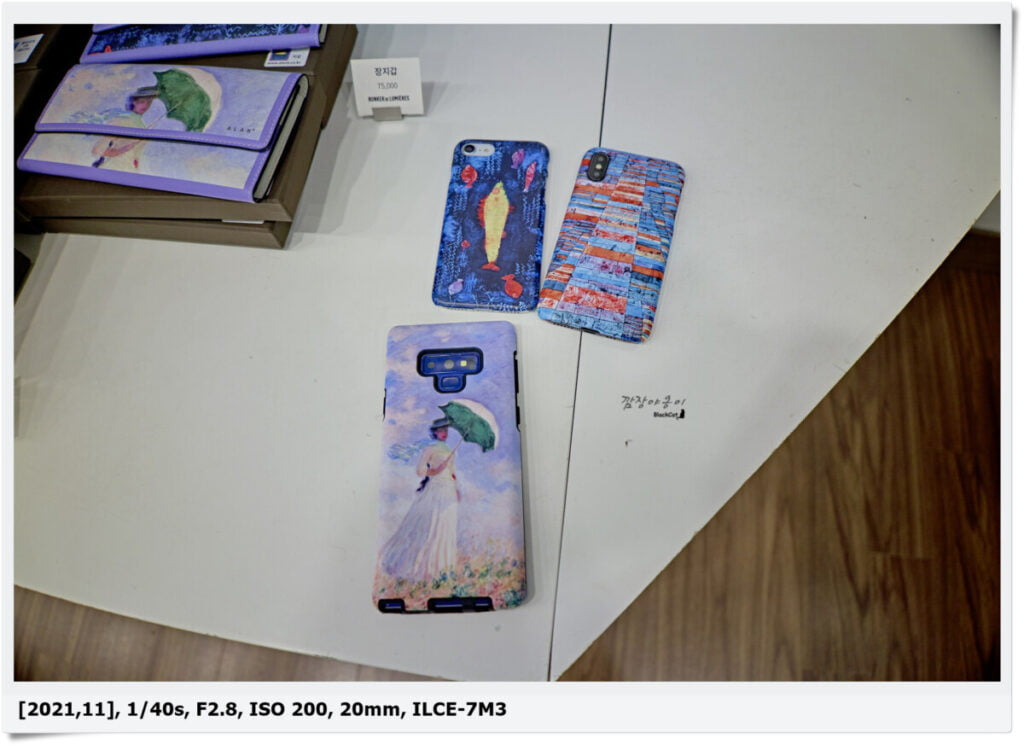 전시 보고 나오는 출구 쪽에는 전시된 그림들을 이용한 엽서와 폰케이스, 우산, 액자 등 다양한 기념품이 마련되어 있으니 감명 깊게 보신 분들은 하나 사 가시는 것도 추억이 될듯 합니다.