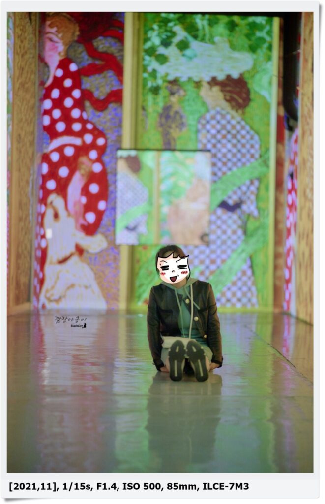 자유로이 사진 찍어도 느낌 있게 나와서 늘 한두 장씩 남기고 오네요. 배경 색감이 너무 이쁘답니다. 어두운 곳이라 사진 촬영이 쉽지는 않으나 플래시를 터트리는 등 다른 사람의 관람을 방해하지 않는 정도 내에서 촬영을 했답니다.