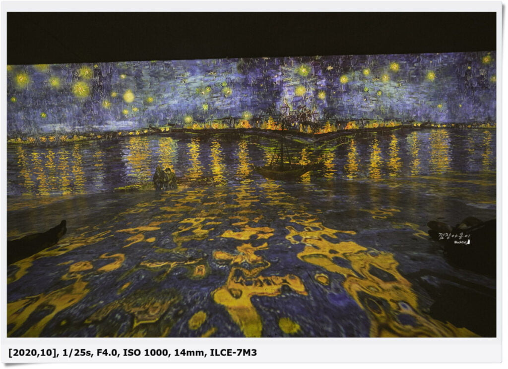 다만, 일반 전시처럼 내가 보고 싶은 그림 앞에서 오래도록 머물 수는 없고 영상이 지나가는대로 내 감상도 따라가야 하긴 하지만.. 아쉬우면 한 번 더 보고 또 한 번 더 보고 할 수 있어서 볼 때마다 또다른 느낌을 줘서 시간만 허락한다면 몇시간이고 앉아 있고 싶은 전시였네요.