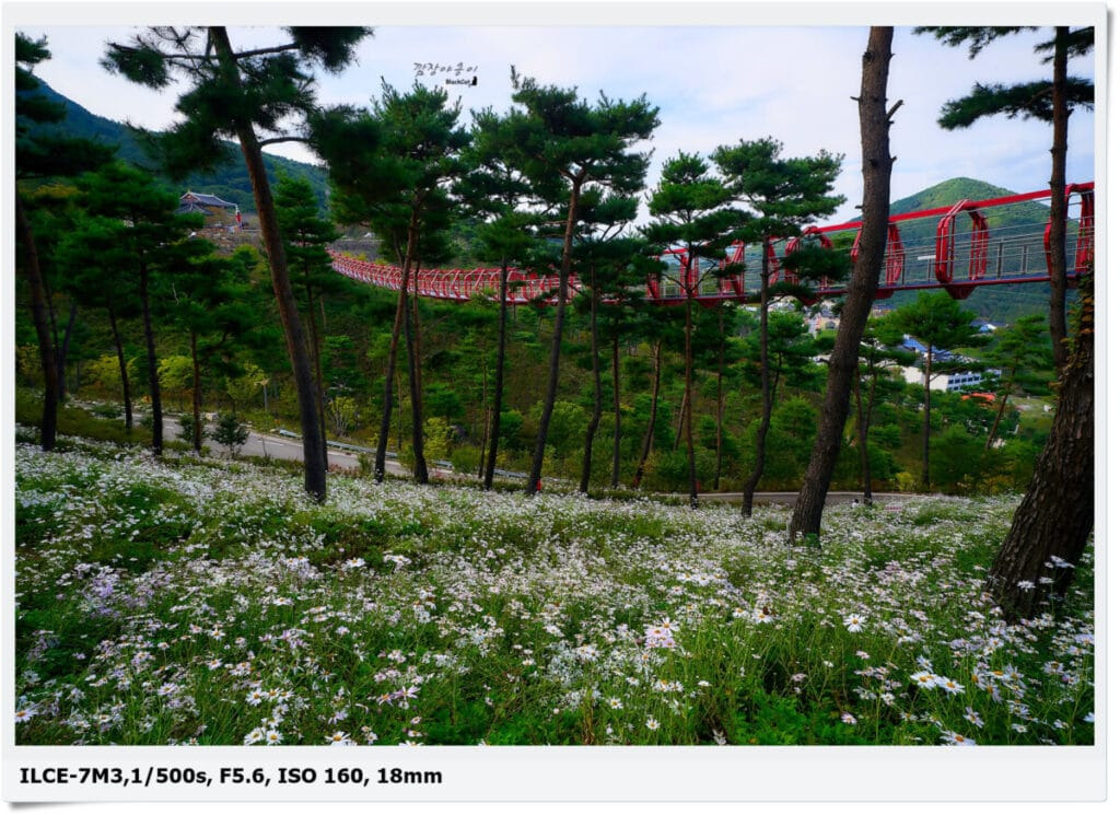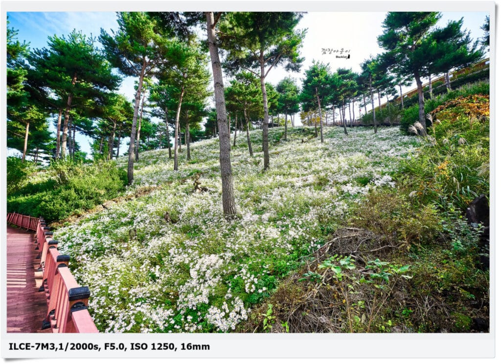 계단 옆, 흔들다리 아래 등 주변에 아햔 구절초가 많이 피어 있는데 무서운 이모님들이 지키고 있어서 안에 들어가지는 못하고 앞에서만 보실 수 있답니다. 참고하세요!!